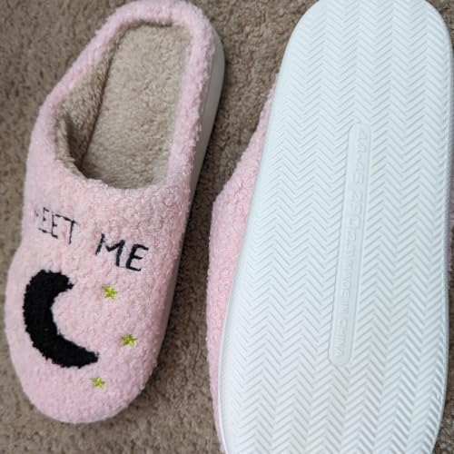 Meet Me at Midnight Cozy Plush Slippers for Women,Pink House Slippers 5