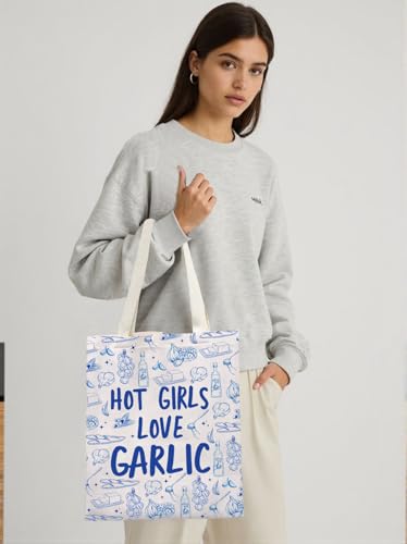KUIYAI GarlicGirl Tote Bag GarlicLover Club Bread Vegetarian Gift Garlic Festival Gift HotGirls Love Garlic Canvas Bag 3