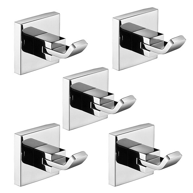 HOT ! 5pcs Robe Hooks,Bathroom Chrome Towel Hooks 304 Stainless Steel Wall Mounted Clothes Hooks For Bathroom/Kitchen