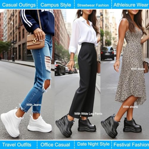 • All-Day Comfort: Experience cloud-like support perfect for travel, walking, and exploring. The cushioned insole provides stability, making these platform sneakers ideal for pairing with dresses or jeans on long outings.