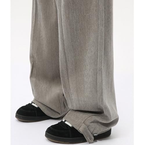 Men's Fall Wide Leg Vintage Trousers Classic Button Loose Fit Floor Length Suit Pants 4