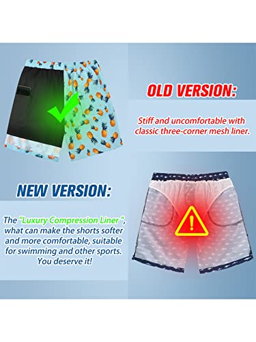 Century Star Mens Swim Trunks with Compression Liner Quick Dry Bathing Suits with Pockets Swim Shorts Pale Blue Pineapple Medium 7