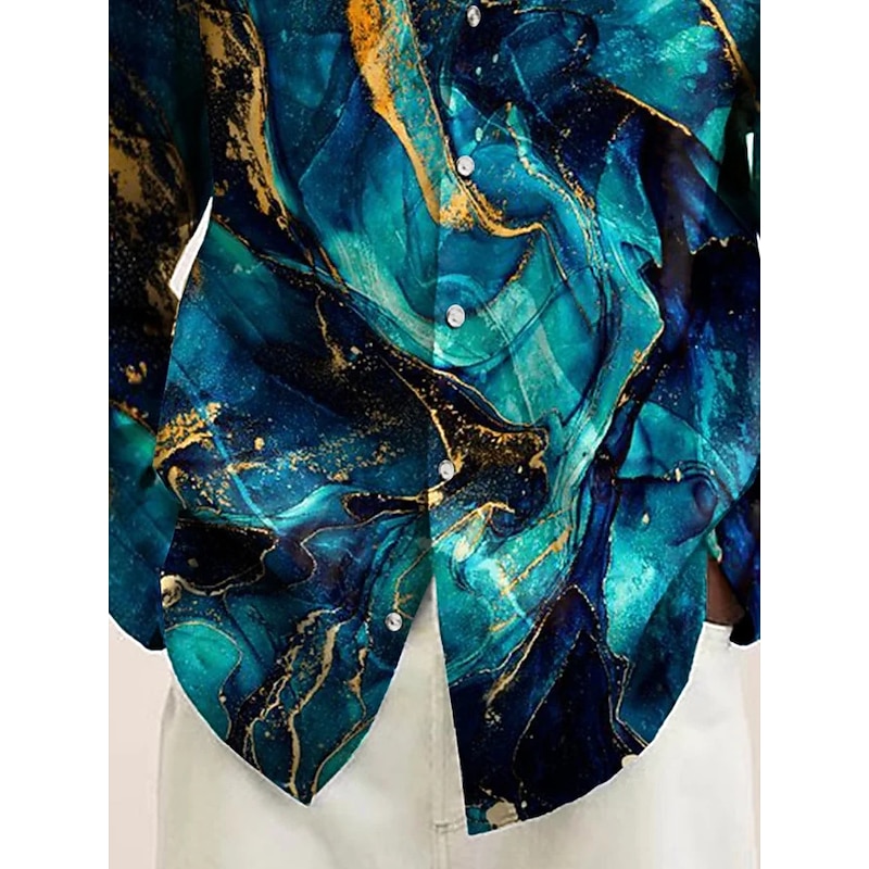 Highlights [Fabric] : Crafted from high-quality slub fabric, this men's long-sleeve shirt offers a lightweight and breathable feel, providing comfort and ease of movement throughout fall and winter. Its micro-elasticity ensures a comfortable fit. [Fit Type] : With its regular fit design, this shirt is tailored to accommodate various body types, making it a versatile addition to any man's wardrobe. [Design Highlights] : Featuring a vintage abstract pattern, this shirt showcases a captivating floral print in a sophisticated palette of blue, green, and black. It boasts a classic turndown collar and a button-down front, perfect for achieving a casual yet refined look. [Occasions] : Ideal for daily wear, weekend outings, or casual workdays, this fashionable shirt effortlessly transitions from day to night, combining an artistic flair with practicality. [Size Range] : Available in a wide range of sizes from S to 5XL, ensuring a suitable fit for different individuals.