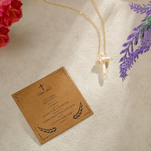 Material: PearlMetal type: PearlChain type: CrisscrossGem type: PearlBaroque Pearl Cross Necklace: our package includes 1 pearl cross necklace and 1 card, experience the essence of exquisite jewelry crafting with our baroque pearl cross necklace; Made from natural baroque freshwater pearls, each necklace is special in its shape and style, designed to suit every individual's distinct taste; Revel in the special design of this magnificent pearl necklaceWorkmanship: our pearl necklace is not only attractive but also incredibly durable, the freshwater pearls combined with our superior craftsmanship ensures the lasting quality and elegance of the necklace; Treasure this captivating blend of tradition and trend that makes our freshwater pearl necklace a masterpieceSymbolizes Deep Meanings: pearl necklace gold with christian-themed card; Each pearl necklace gold not only showcases an aesthetically pleasing design but also conveys deeply beautiful meanings; The cross-shaped baroque jewelry serves as a symbol of faith and commitment while the Christian-themed card enhances its religious significanceBetter Religious Accessory: baroque jewelry suitable for christian celebrations; Being a cross-shaped pearl necklace, it serves as an ideal accessory for Christian events such as Easter, baptisms, and various other religious celebrationsThoughtful Gift Item: baroque pearl necklace, whether it's birthdays, weddings, anniversaries, or various major holidays such as Christmas, Valentine's Day, Thanksgiving, and Mother's Day, our pearl necklace serves as the perfect gift; As a symbol of love, faith, and beauty, it's better way to express your heartfelt wishes Perfect for everyday use. superior materials and excellent craftsmanship ensure long-lasting durability.