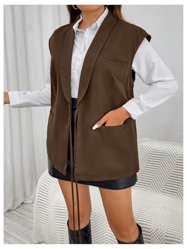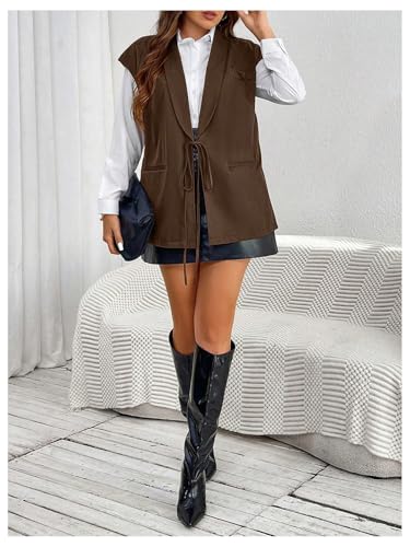 • Features: Leather, sleeveless, plus size, tie front, lapel, office blazer for women