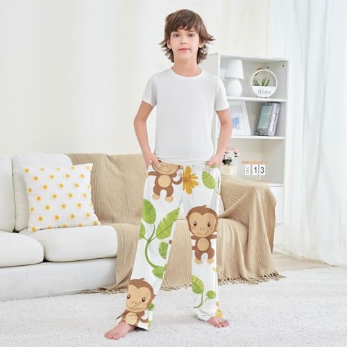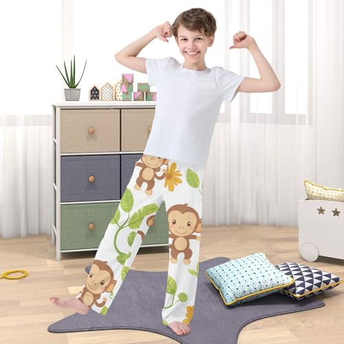 Monkey Daisy Flowers Boys Long Pants Soft Trousers Elastic Waist Kids Lounge Bottoms with Pockets S-XL 6