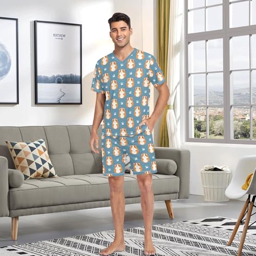 Men's Pajama Set Summer Short Sleeve Guinea Pigs Loungewear 2 Piece Sleepwear Set with Pockets 5