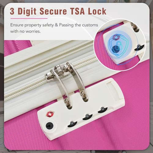 20 IN Luggage 1 Piece with TSA lock, Lightweight Suitcase Spinner Wheels,Carry on Vintage Luggage,Pink 3
