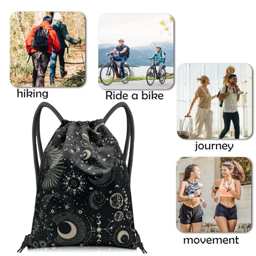 Drawstring Backpack Draw String Bag Sports Gym Bags Waterproof Cute Aesthetic Sackpack for Unisex Women Sports Beach Travel(13"×17")-Moon
