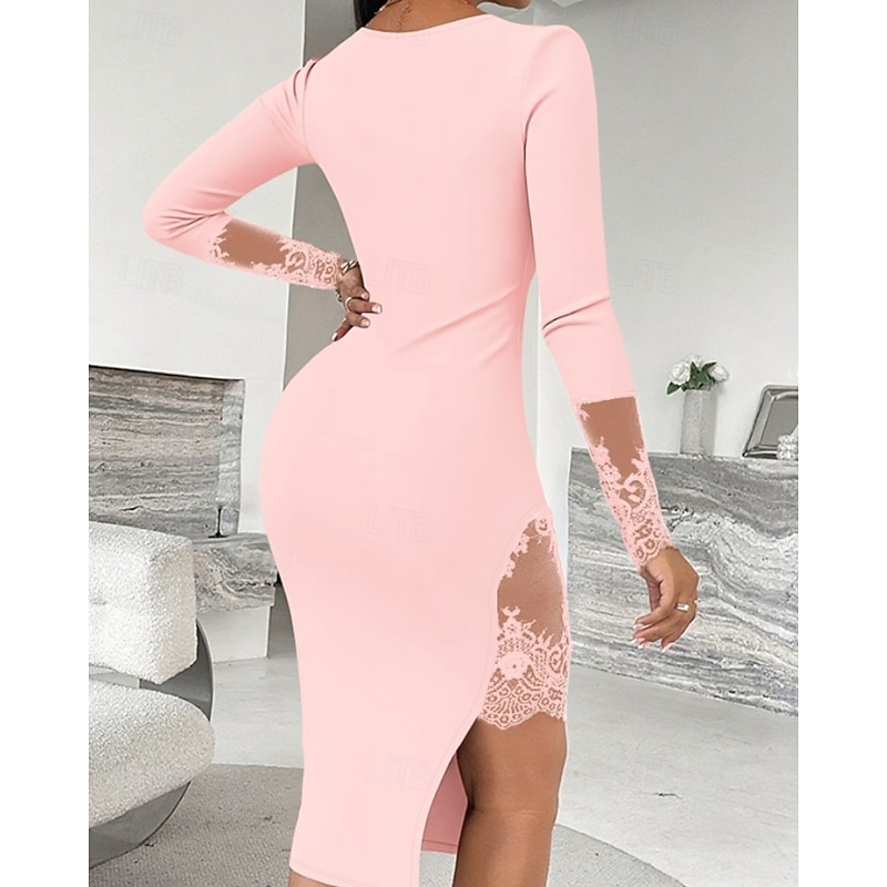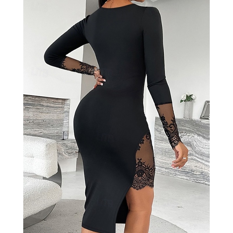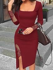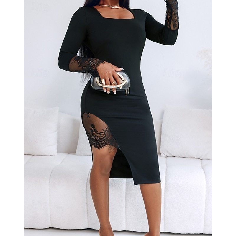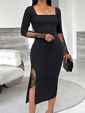 Highlights - Perfect for any party occasion - Elegant lace design - Stylish split design - Flattering square neck neckline