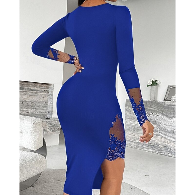 HOT ! Women's Midi Dress Sequin Dress Party Dress Cocktail Dress Wrap Dress Elegant Fashion Party Special Occasion Evening Party Regular Fit Plain Long Sleeve Square Neck Black Pink Wine Blue Spring Fall