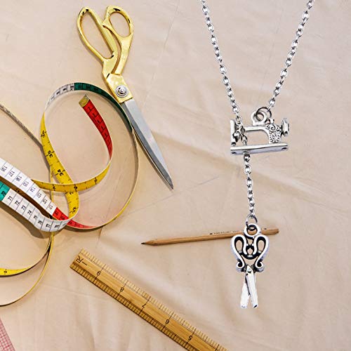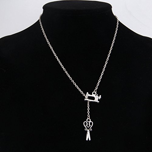 SEIRAA Sewing Machine and Scissors Pendant Necklace Vintage Style Hairdresser Necklace Gift for Barber