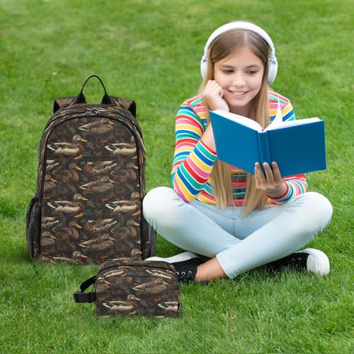 Kids Backpack Grey Mallard Duck Leaves Camo School Bookbag with Lunch Bag for Boys Girls Preschool Kindergarten Elementary Laptop Daypack 5