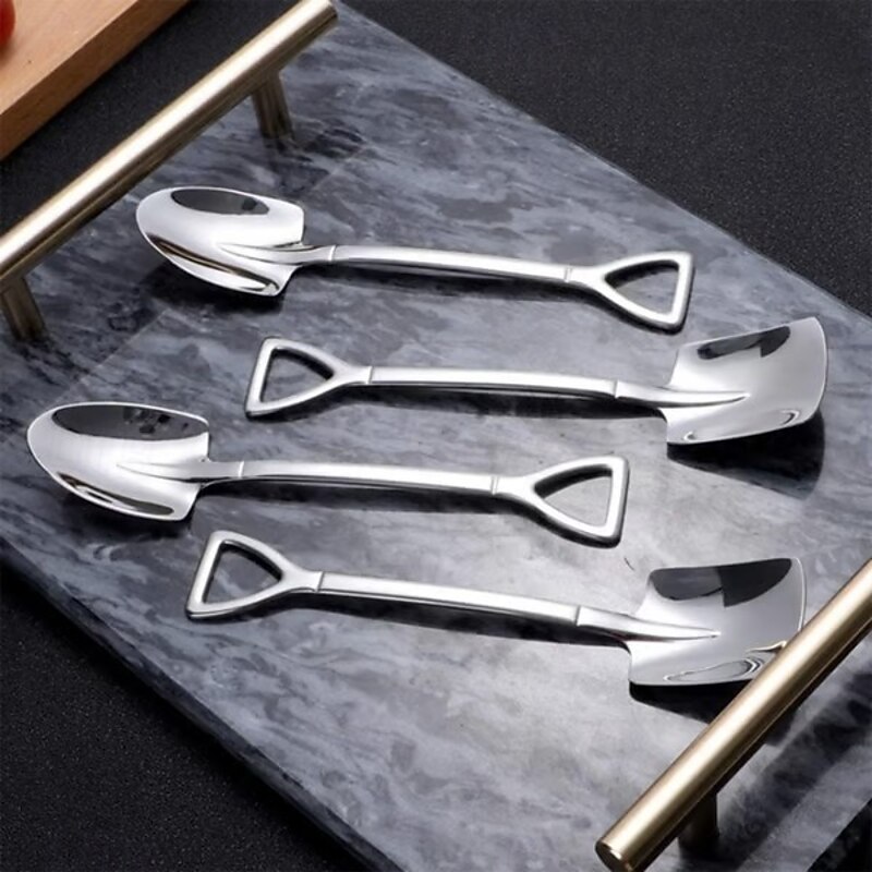 HOT ! 4pcs Stainless Steel Shovel Spoon, Creative Cute Mini Shovel Dessert Spoons, Household Stainless Steel Tableware for Watermelon, Ice Cream, Couples