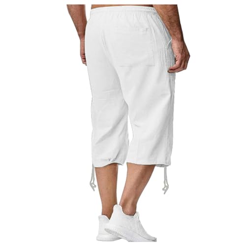 Pants for Men Summer Fashion Workout Capri Pants Mens Cotton Linen Cropped Trousers Drawstring Elastic Waisted Jogger 7