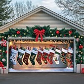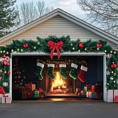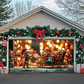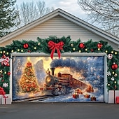HOT ! Christmas Door Decorations Outdoor Garage Door Cover Xmas Christmas Gifts Banner Farmhouse Large Christmas Backdrop for Holiday Outdoor Garage Door Home Wall Decorations