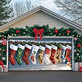 Christmas Door Decorations Outdoor Garage Door Cover Xmas Christmas Gifts Banner Farmhouse Large Christmas Backdrop for Holiday Outdoor Garage Door Home Wall Decorations 23