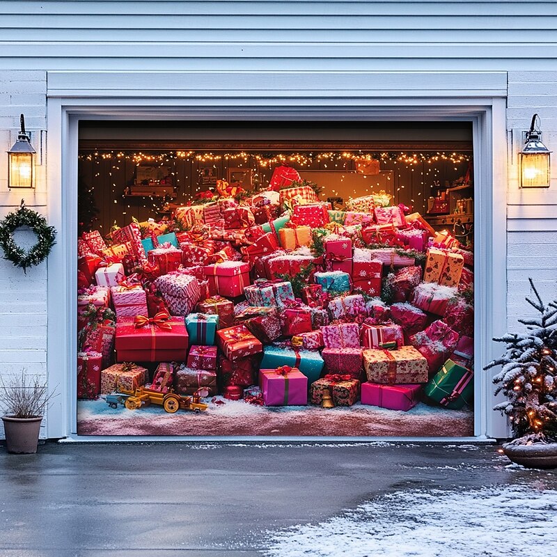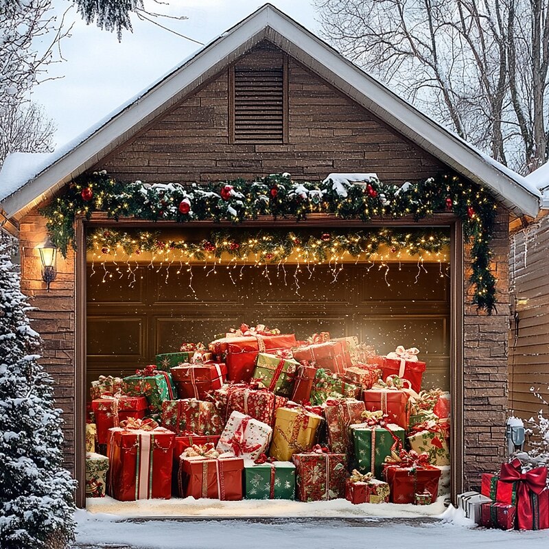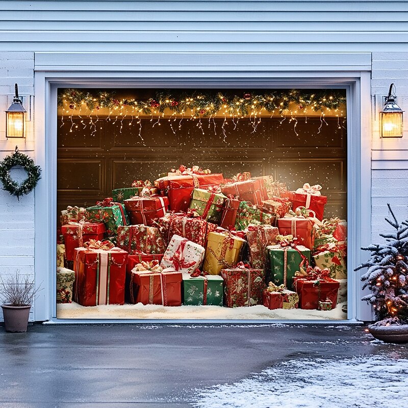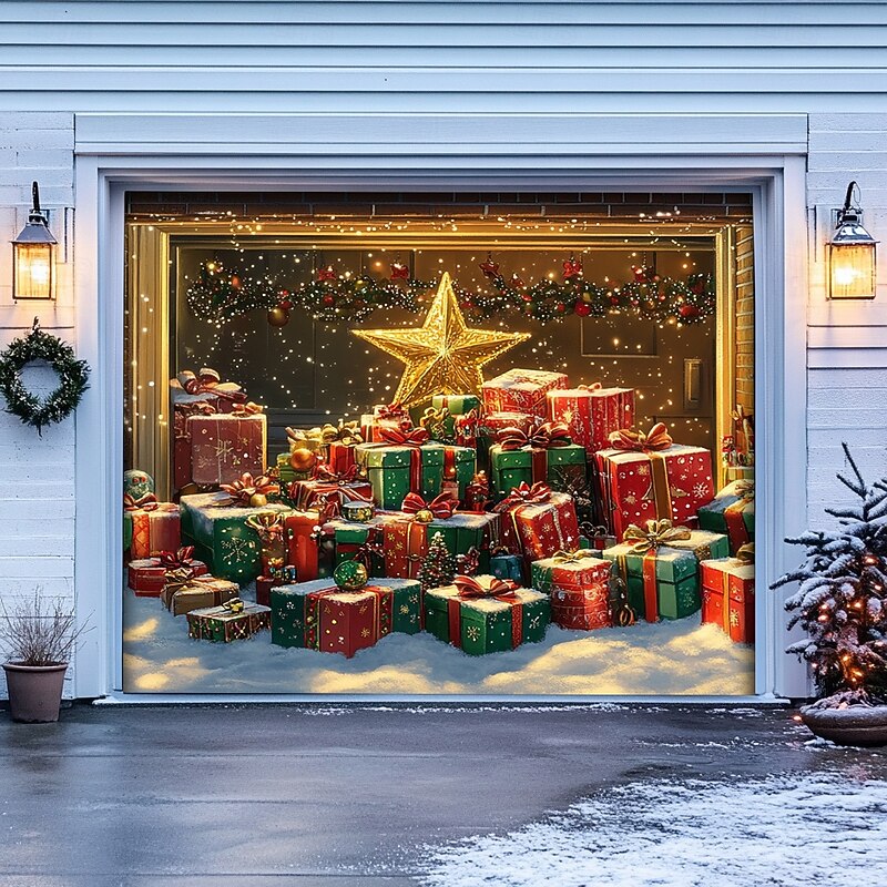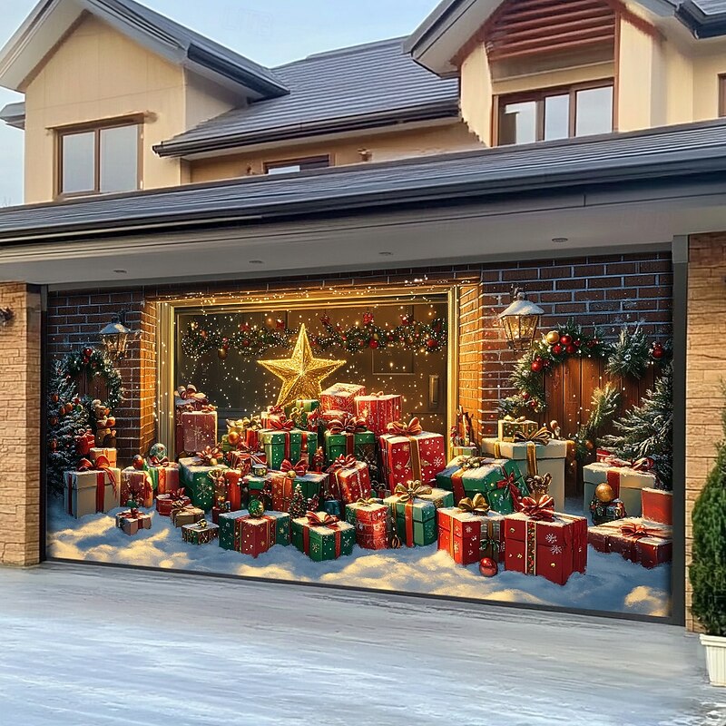 Christmas Door Decorations Outdoor Garage Door Cover Xmas Christmas Gifts Banner Farmhouse Large Christmas Backdrop for Holiday Outdoor Garage Door Home Wall Decorations 11