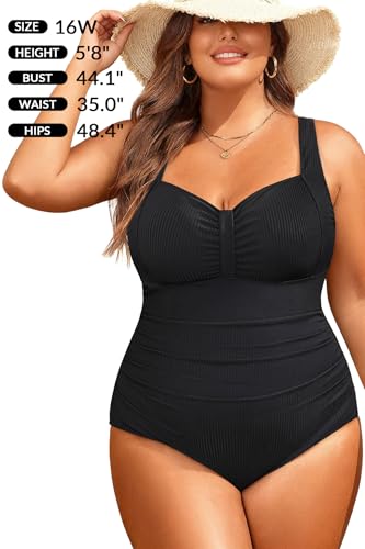 Fabric type: 93% Polyester, 7% SpandexCare instructions: Machine WashOrigin: ImportedClosure type: Hook and EyeRetro Plus One Piece Swimsuit :This plus-size bathing suit features a sweetheart neckline and wide shoulder straps, beautifully highlighting your neckline. The ribbed fabric adds a stylish touch.Plus Size Tummy Control Swimwear: The ruched design enhances your curves while smoothing and shaping your midsection, creating a flattering, slimming silhouette.Plus Size One Piece Bathingsuit: With adjustable shoulder straps, removable padded bras, and a secure hook closure at the back, this swimsuit offers maximum support and comfort.Comfortable Material: Made from soft, stretchy, and quick-drying fabric, this plus-size swimsuit ensures comfort and durability. Perfect for women, teens, and moms.Size Options: Available in six sizes: 14 Plus (US 14W), 16 Plus (US 16W), 18 Plus (US 18W), 20 Plus (US 20W), 22 Plus (US 22W), and 24 Plus (US 24W). Please check the size chart below the product description before ordering. Perfect for everyday use. High quality materials and excellent craftsmanship ensure long-lasting durability.