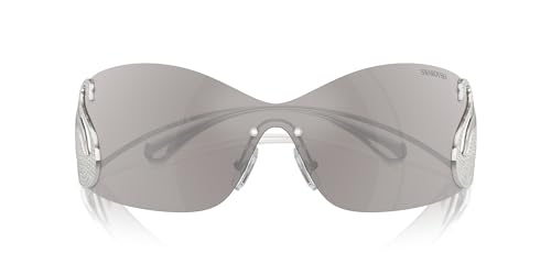 • FRAME FEATURES: SK7020 sunglasses feature an oversized wrap oval, silver frame with light grey mirrored silver lenses and full crystal Swarovski swan design on the hinges and temples.