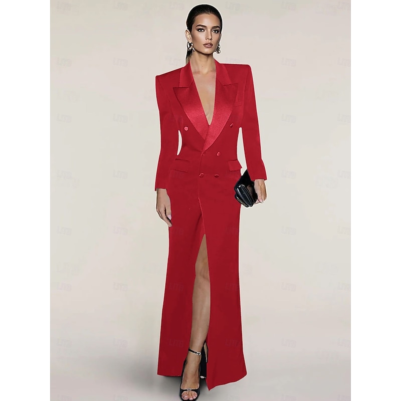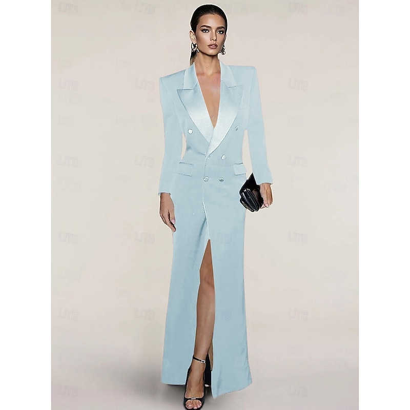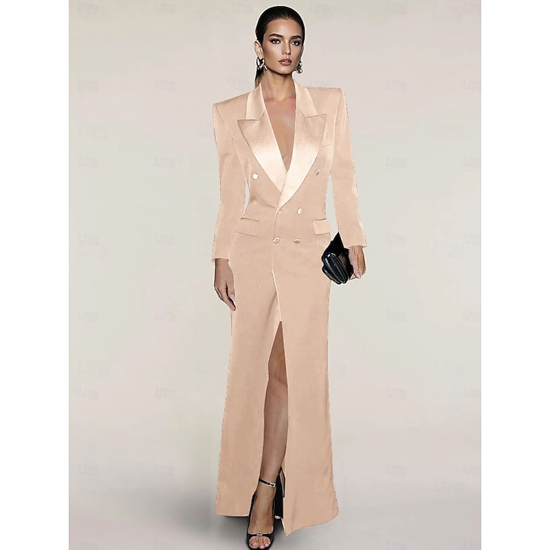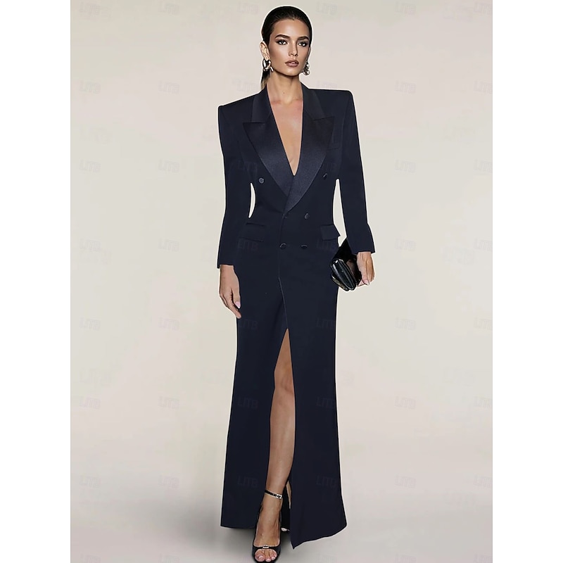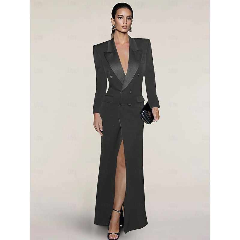 More information about Tuxedo Dress Mermaid / Trumpet Mermaid Wedding Guest Satin Elegant Long Sleeve Floor Length Split Thigh Notch lapel collar Double Breasted