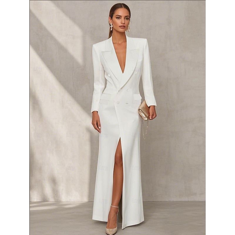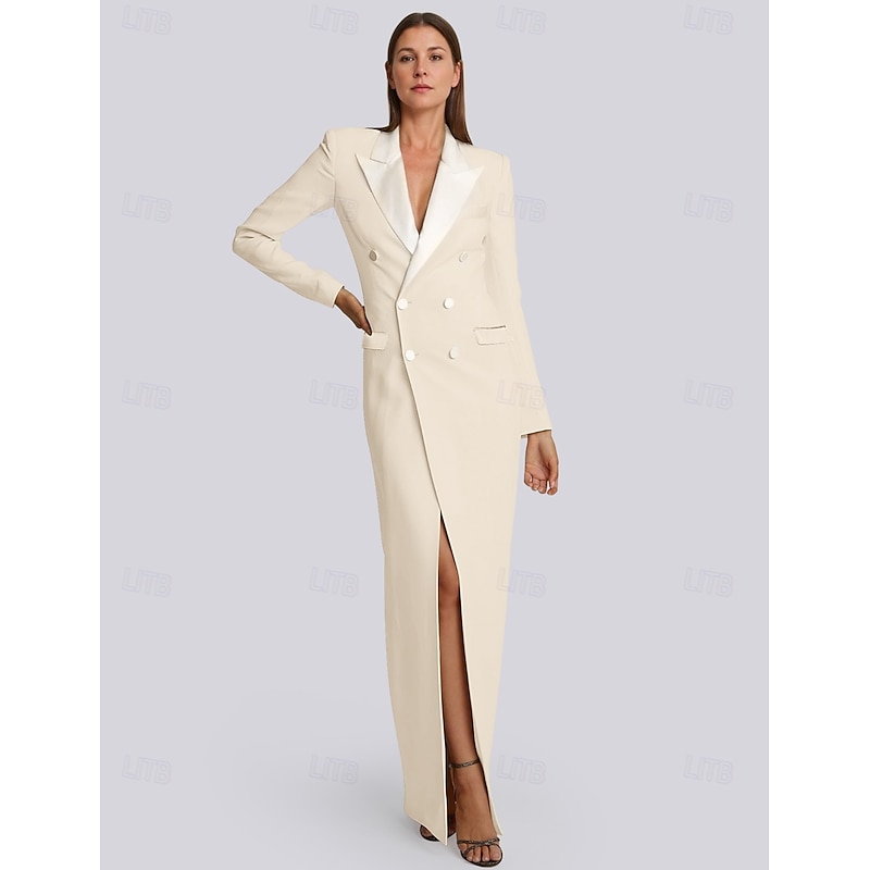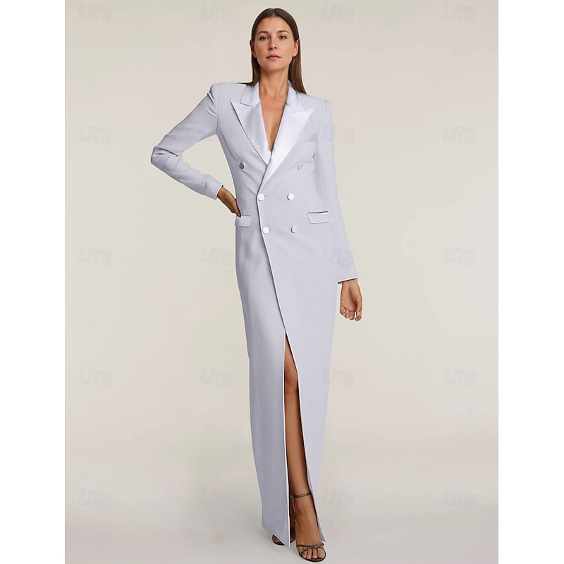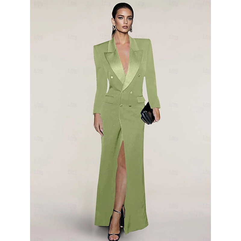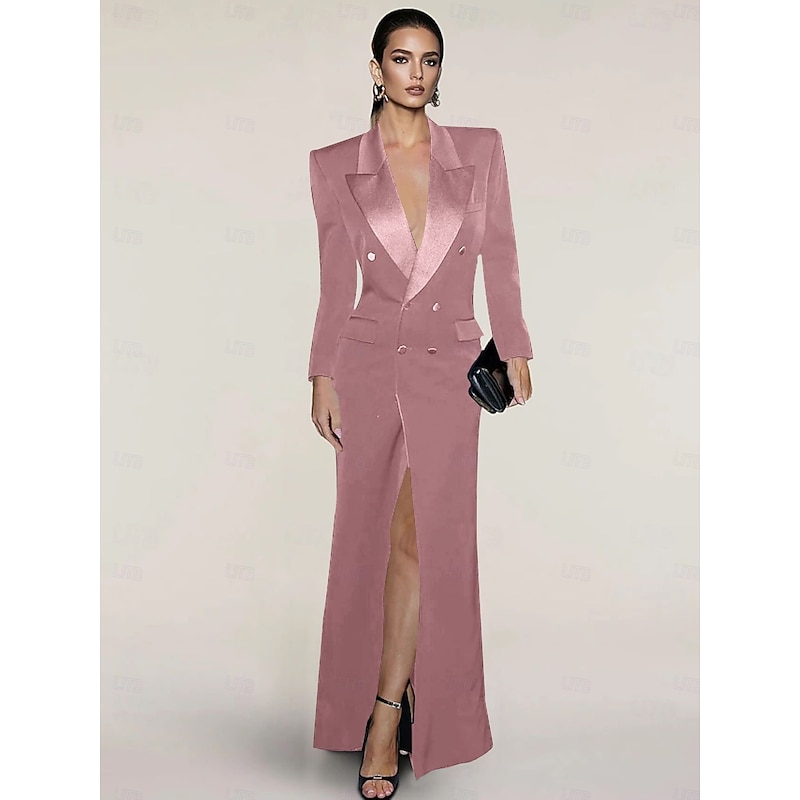 More information about Tuxedo Dress Mermaid / Trumpet Mermaid Wedding Guest Satin Elegant Long Sleeve Floor Length Split Thigh Notch lapel collar Double Breasted