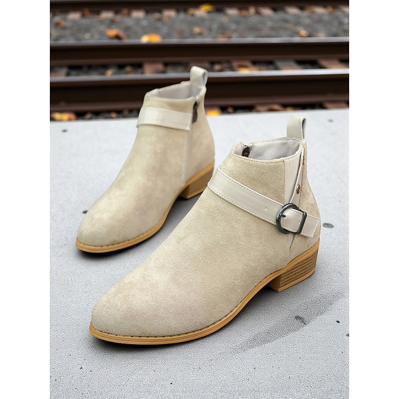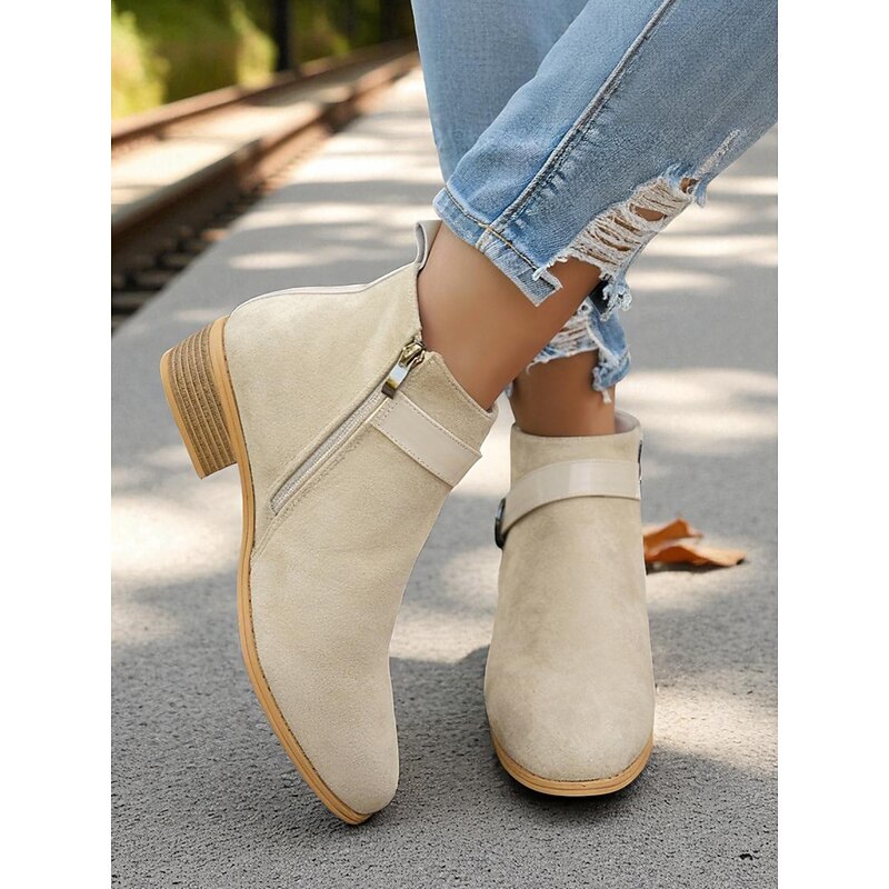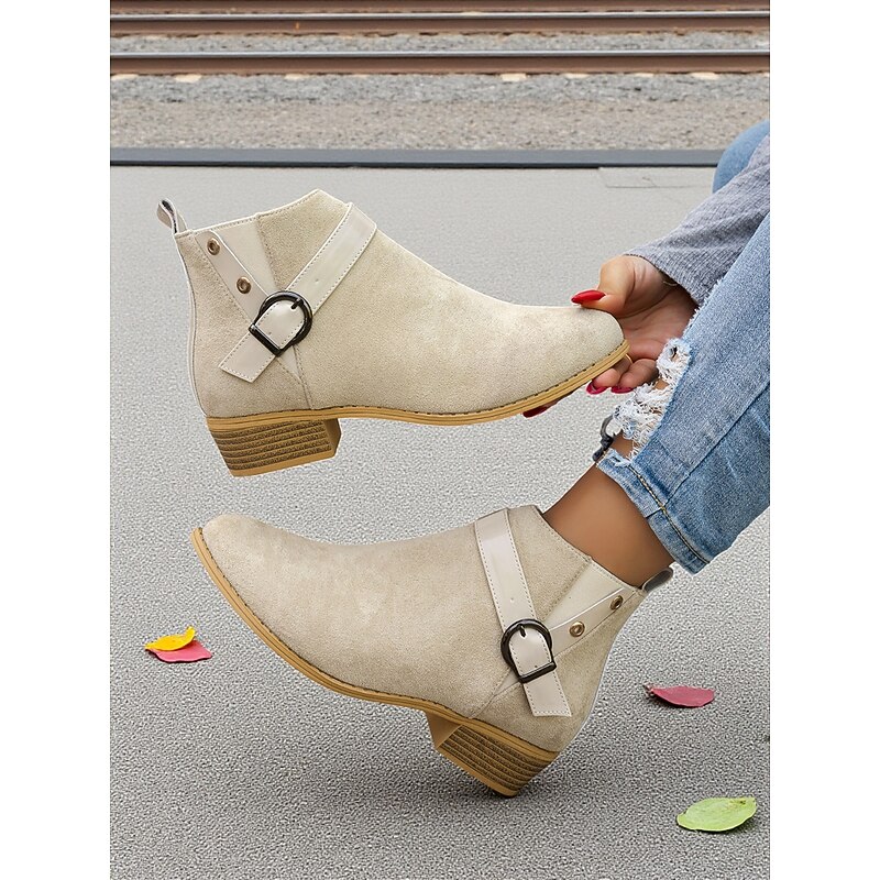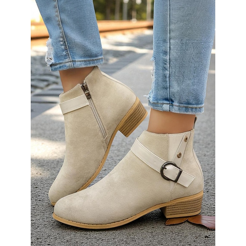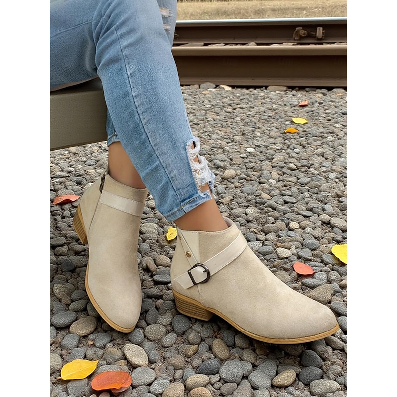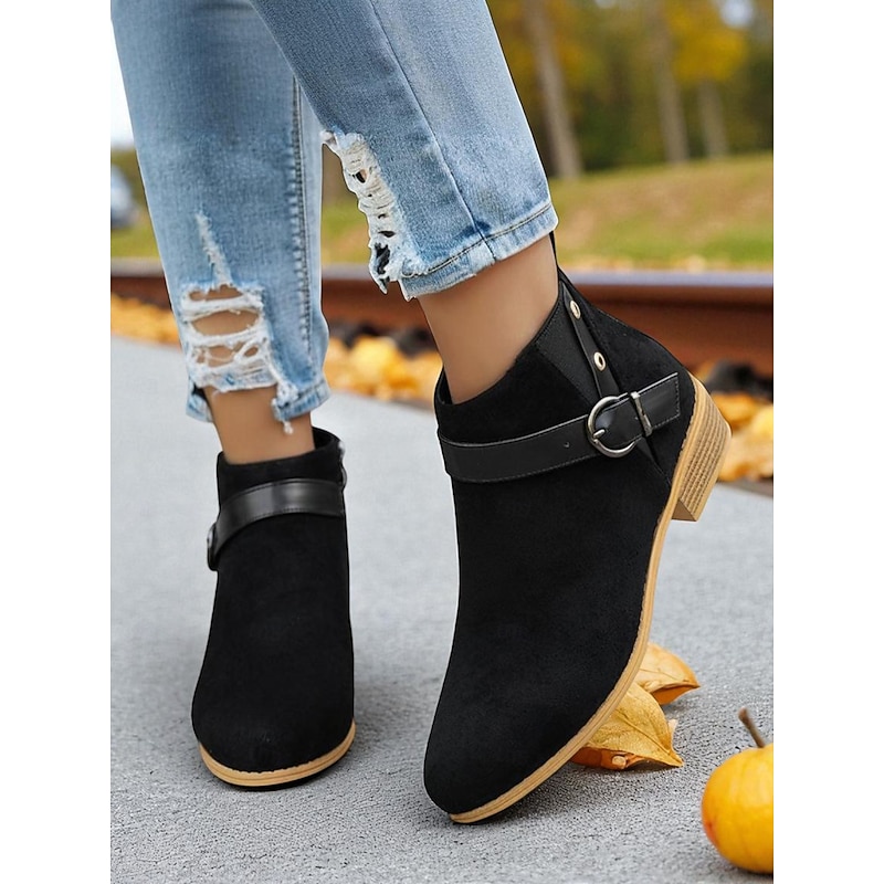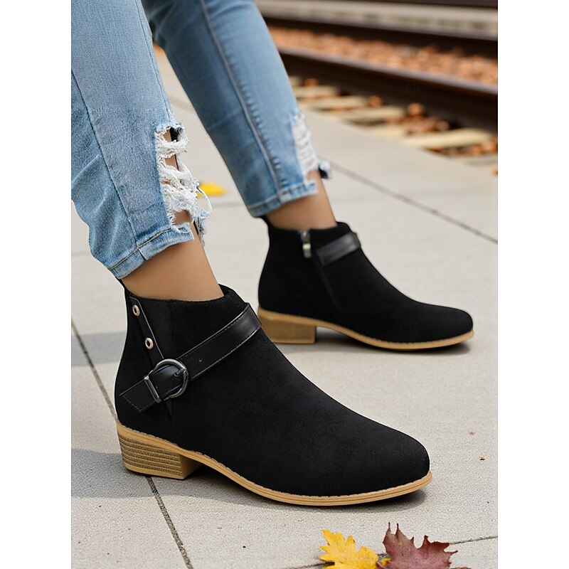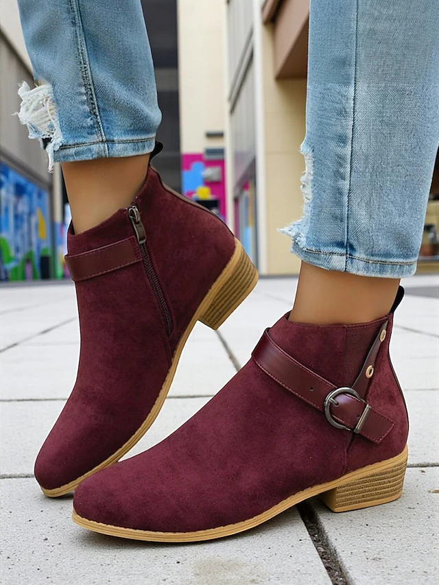Why Choose Women's Burgundy Faux Suede Ankle Boots with Buckle Strap – fashionable Low Heel Booties for Casual Outfits, Outdoor Strolls and Autumn Wear?
