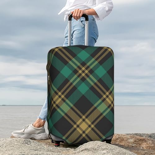 HOT ! Diagonal Dark Green Gold Plaid Luggage Cover, Protective Washable Suitcase Cover - Travel Fashion Elastic Suitcase Protector X-Large