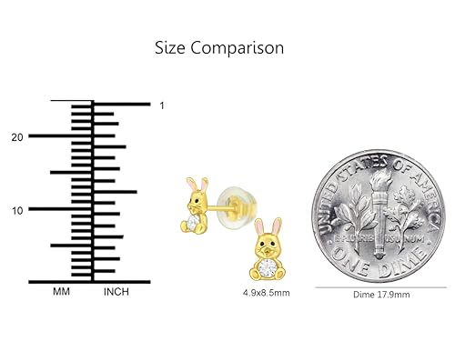 Limited Edition Solid 925 Sterling Silver Easter Bunny Dainty Little Stud Earrings with Cubic Zirconia Hypoallergenic 46827 5