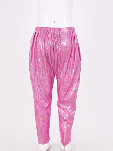 Girls Kids Sequin Metallic Elastic Waistband Trousers Little Boys Hip Hop Jazz Streetwear Dance Sports Trousers Hot Pink 7-8 Years 1