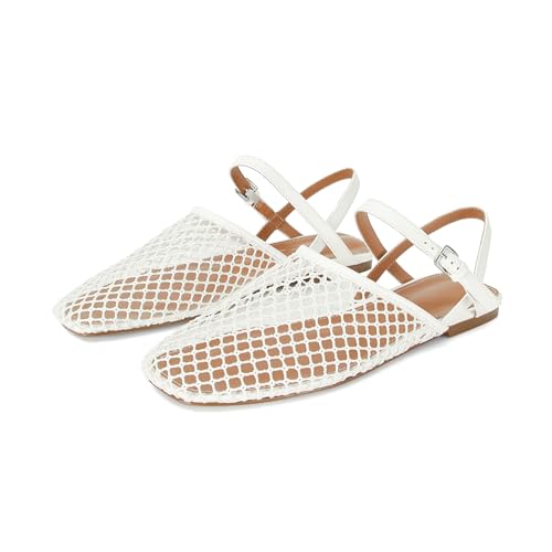 HOT ! White Mesh Ballet Flats for Women Slingback Flats Round Toe Mary Jane Flat Fishnet Ballerina Shoes Comfortable Casual with Buckle Strap