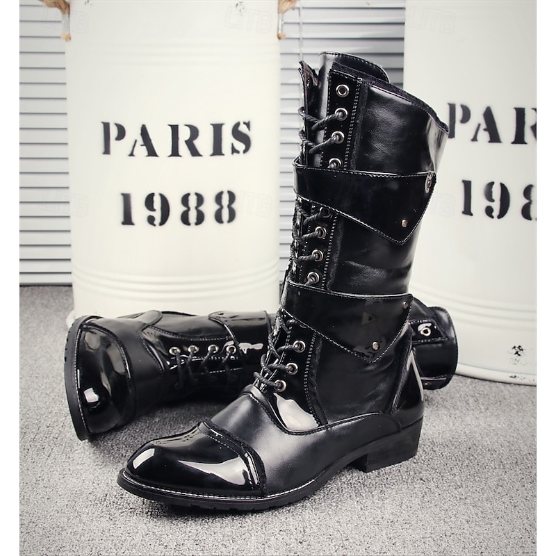 $79.99 - Men's Black Punk Rock Knee-High Boots – Shiny Patent Leather with Multi Buckle Straps and Lace-Up Front for Gothic, Biker, Concert and Halloween Outfits 2025. Shop for cheap Shoes For Men online? Buy at lightinthebox.com on sale today!