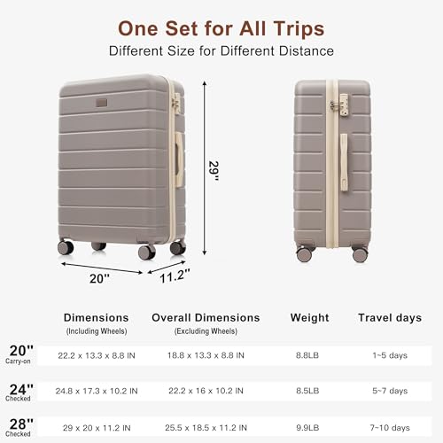 trending ! Premium ABS Travel Luggage Set,3-Piece TSA Lock Suitcase Ensemble with 20,24,and 28 Inch Sizes with 360° Spinner Wheels,rosybrown