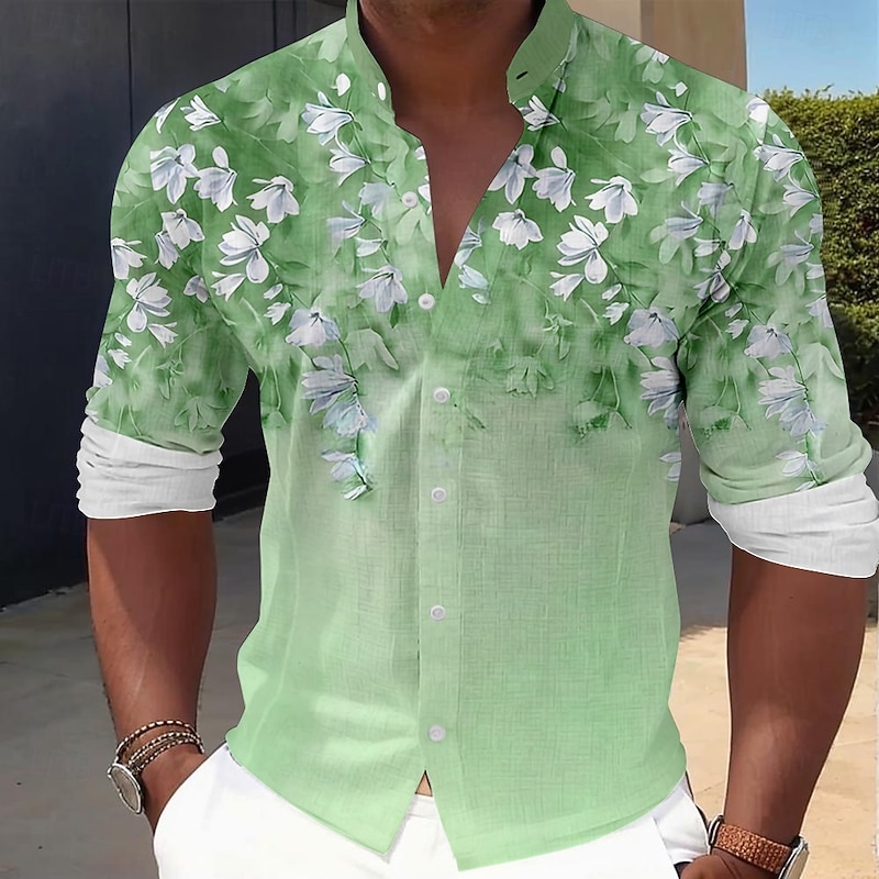 More information about Men's Floral Dress Shirt Button Up Shirt Long Sleeve Hawaiian Casual Vacation Party Evening Wear Daily Summer Spring & Fall Grandad Collar Band Collar 3D Print Pink Blue Green