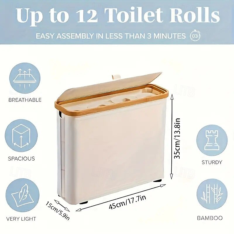 $24.99 - Bamboo Toilet Paper Holder with Lid and Handle, Compact and Stylish No-Installation Bathroom Storage Basket, Rectangular Organizer for Home and Office 2025. Shop for cheap Storage & Organization online? Buy at lightinthebox.com on sale today!