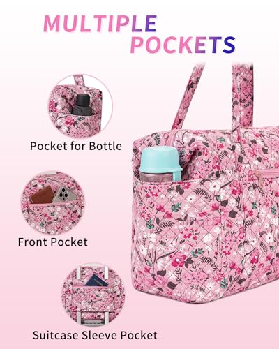 HOT ! Ceneda Travel Duffle Bag - Quilted Weekender Overnight Bags For Women with Wet Pocket & Shoe Bag, Fits Airline Approved Personal Item Size (Pink Flower)