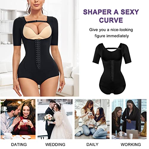 • UPPER ARM SHAPER AND OPENED-BUST BODYSUIT: Special U-Shape design, the open bust shapewear bodysuit for women will prevent breast sagging, makes your chest more erect and attractive. The removable breast support band for women will offer you option to enhance chest gathering. Different from other tummy slimming bodysuit, our shapewear for women tummy control plus with upper arm shaper sleeves, say goodbye to your flabby arms.