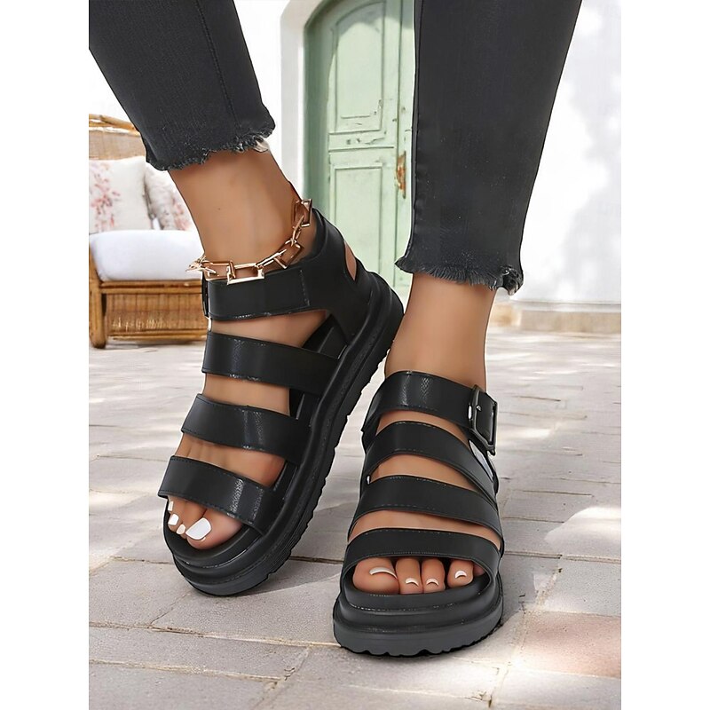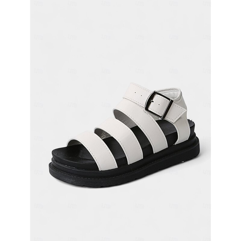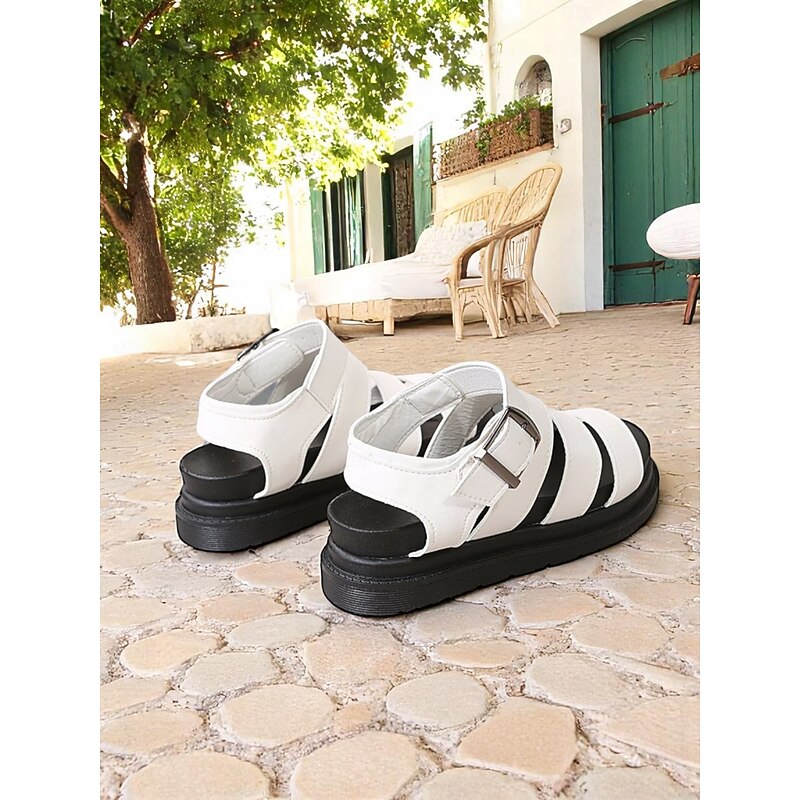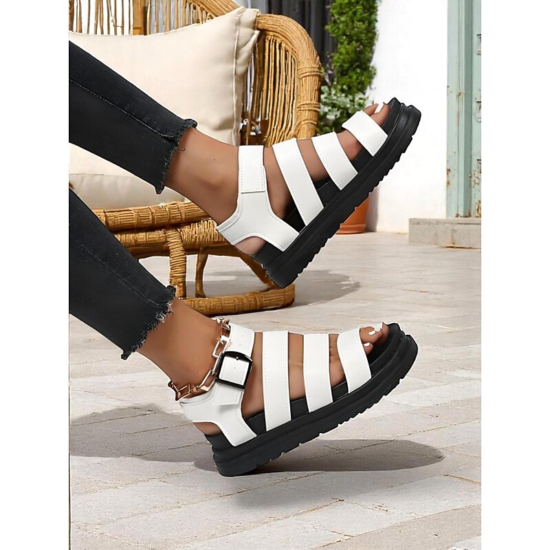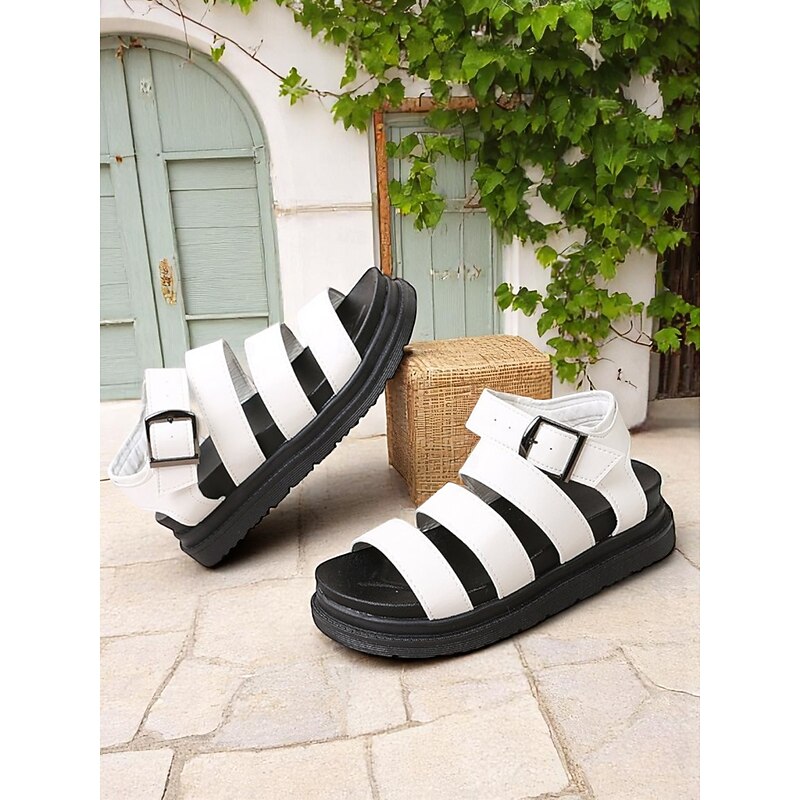 HOT ! Women's White Buckled Strappy Sandals – Casual Sporty Flat Shoes for Daily Walking, Travel, and Summer Outings