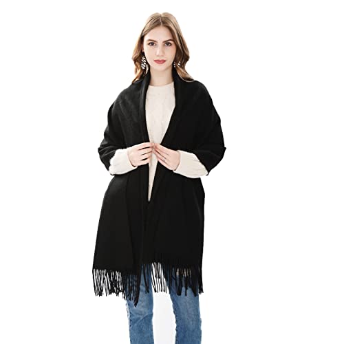 100% Pure Cashmere Scarf, Fringed Edges, Oversized Unisex, thermal & supple, Solid/Plaid Colors
