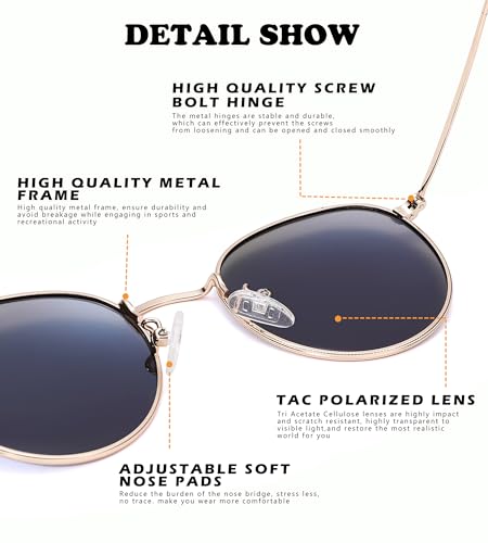NULOOQ Round Polarized Sunglasses for Women – Classic Retro Small Metal Frame Sun Glasses UV Protection 3