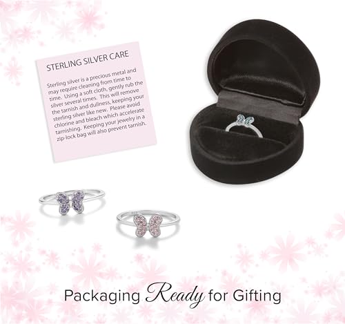 Precious Pieces Girls Sterling Silver Butterfly CZ Simulated Birthstone Baby Ring for Little Girls, Kids and Toddlers 3
