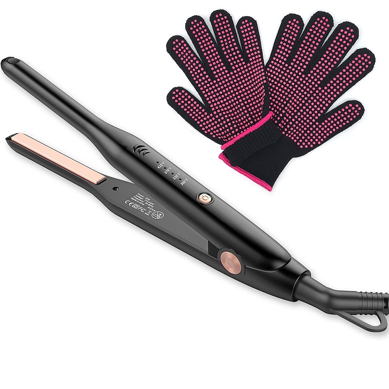 Small Flat Iron for Edges Pencil Hair Straightener for Short Hair & Long Hair 3/10 inch Tiny Flat Iron with Adjustable Temp Settings&Dual Voltage with Heat Resistant Gloves 1