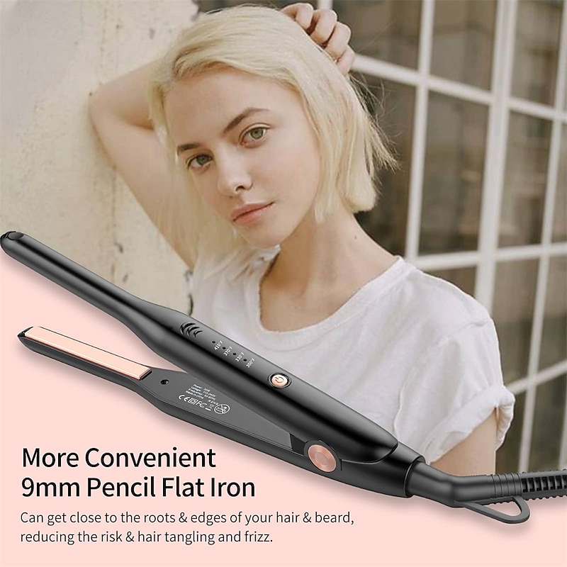 Small Flat Iron for Edges Pencil Hair Straightener for Short Hair & Long Hair 3/10 inch Tiny Flat Iron with Adjustable Temp Settings&Dual Voltage with Heat Resistant Gloves 9