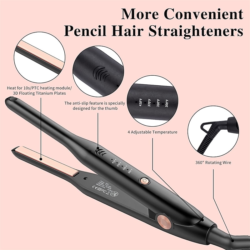 Small Flat Iron for Edges Pencil Hair Straightener for Short Hair & Long Hair 3/10 inch Tiny Flat Iron with Adjustable Temp Settings&Dual Voltage with Heat Resistant Gloves 11