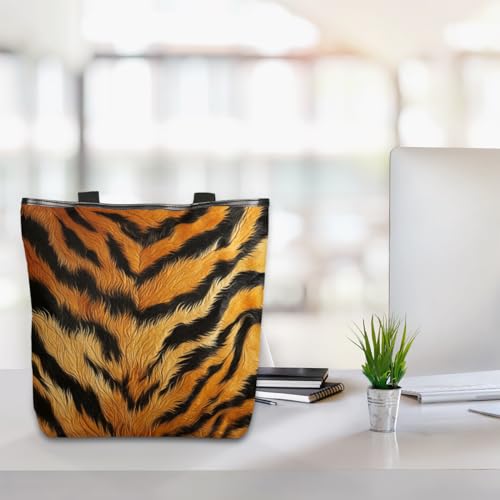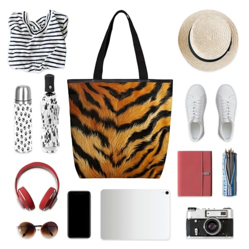 HOT ! Animal Tiger Print Canvas Tote Bag for Women Large Tote Bag with Zipper & Pockets Canvas Beach Bag Shoulder Bag Reusable Shopping Bags Cute Tote Bags for Work Travel