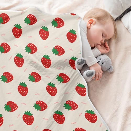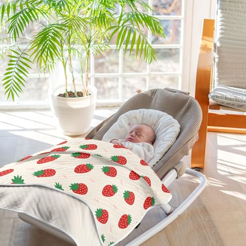 Custom Cute Cartoon Strawberry Beige Baby Swaddle Blanket Breathable Personal Kitten tag Blankets for Newborns, Infants, & Toddlers 30x40in Mantas para Bebes recien nacidos 6