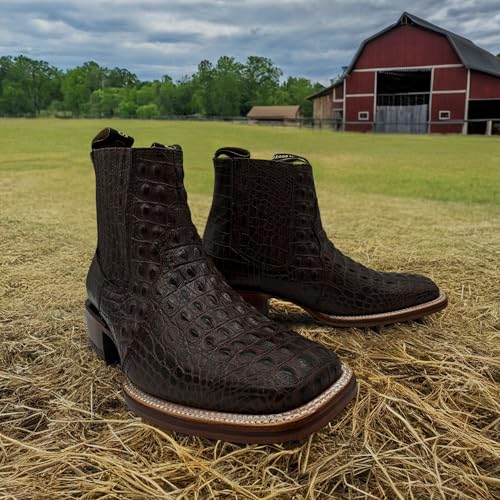 • DESIGN: Men’s Leather Cowboy Western Boot |Crocodile Embossed Print | Ankle Length | Square Toe