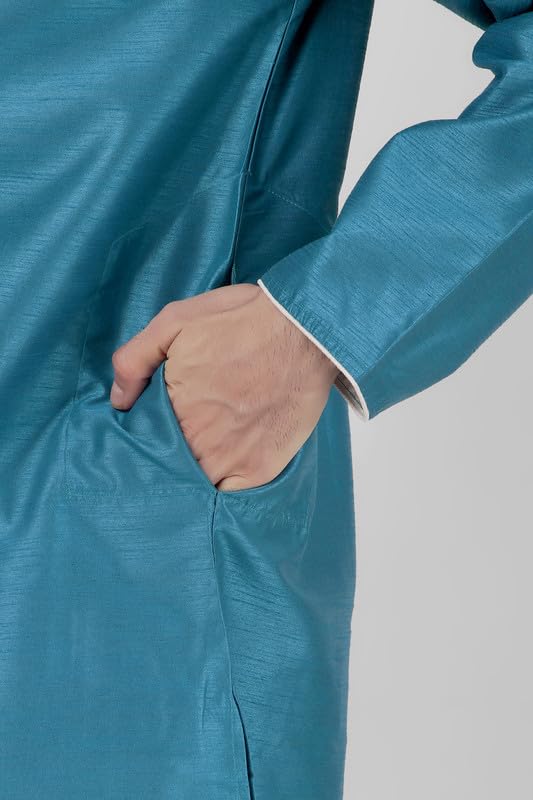 Mens Art Silk Kurta Pajama Set For Wedding and Parties - Mandarin Neck 4