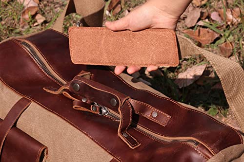 • Durable Material: This Fashion Overnight Bag Is Made From High-Density Pure Cotton Canvas And Genuine Crazy Horse Leather. The Canvas Is Waxed, Making The Bag Waterproof And Having a Retro Sense. The Crazy Horse Leather Features Scratches, It Gives The Bag a Vintage Feeling Of Wildness. With Sturdy Hardware, It Is Not Easy To Wear And Tear, Very Long-Lasting.