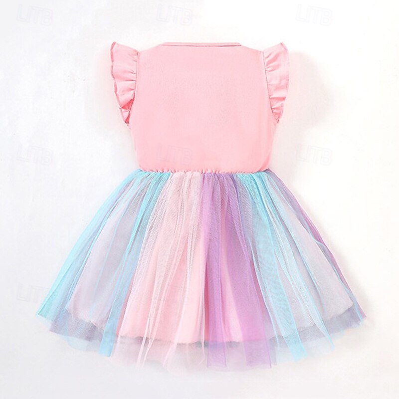 More information about Kids Girls' Dress Unicorn Sleeveless Outdoor Casual Ruffle Patchwork Fashion Adorable Polyester Above Knee Casual Dress A Line Dress Tulle Dress Summer Spring 4 years+ Pink Blue Purple